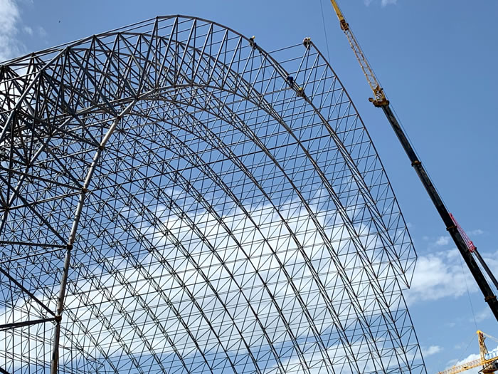 (2)网架加工前应对现场尺寸进行复测,确认无误后方可进行加工、安装;网架制作、运输、安装应遵守《空间网格结构技术规程》JGJ7-2010、《钢网架泰兴螺栓球节点》JG/T 10-2009、《钢网架泰兴螺栓球节点用高强度螺栓》 GB/T 16939-2016、《泰兴钢结构泰兴工程泰兴施工规范》 GB50755-2012、《泰兴钢结构泰兴工程施工质量验收标准》 GB50205-2020。