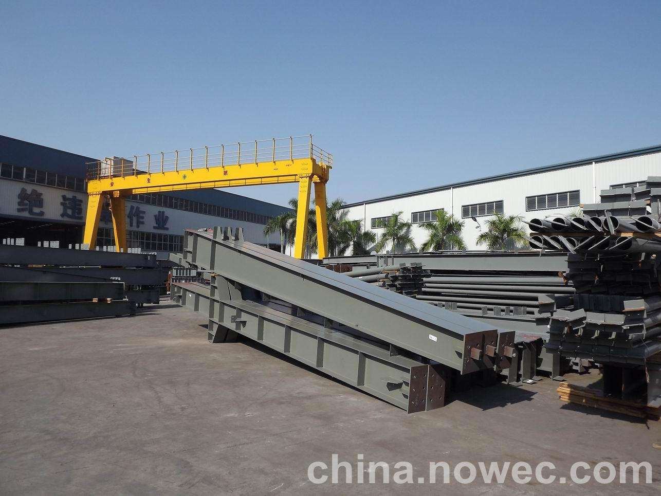 条状单元一般沿长跨方向分割,其宽度约为1~3个网格,其长度为l2或l2/2(l2为短跨跨距)。块状单元一般沿泰兴网架平面纵横向分割成矩形或正方形单元。每个单元的重量以现有起重机能胜任为准。条(块)与条(块)之间可以直接拼装,也可空一网格在高空拼装。由于条(块)状单元是在地面拼装,因而高空作业量较高空散装法大为减少,拼装支架也减少很多,又能充分利用现有起重设备,故较经济。这种安装方法适用于分割后网架的钢度和受力状况改变较小的各类中小型网架,如两向正交正放四角锥、正放抽空四角锥等网架。